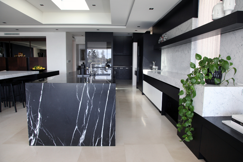 This East Fremantle residence oozes opulence and style by using a stunning Carrara marble throughout the home and a feature Nero Marquina island bench